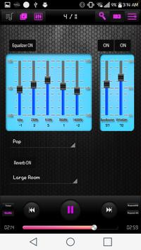 (Folder, album, singer play, visualizer, Equalizer, Reverb , LRC lyrics,ID3 tag edit, several of the themes, user visual settings, and AB repeat, random play, user list, edit, save, delete, multi-function music player)