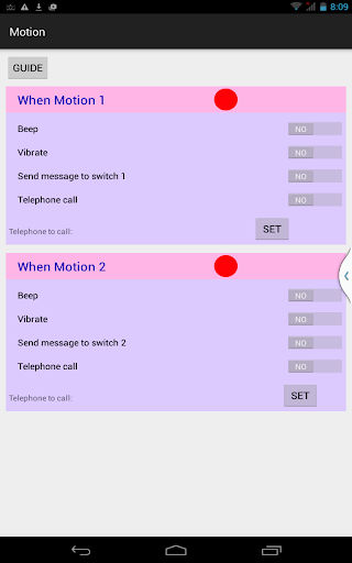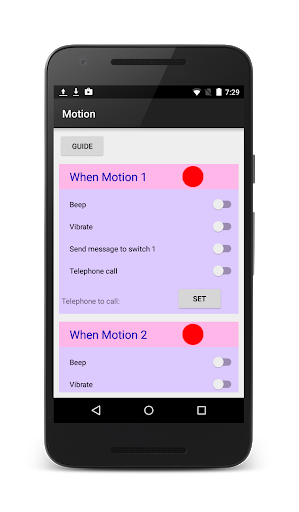- Added Motion senor with beep alert, vibration alert, message alert and telephone call alert.