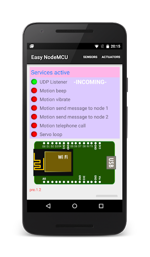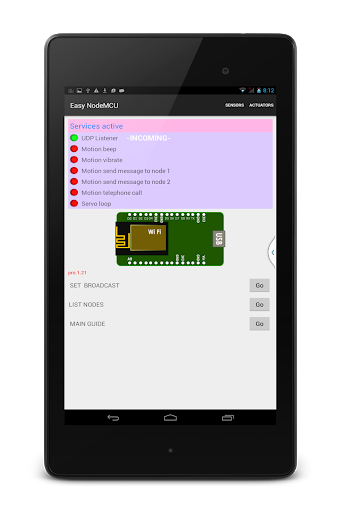 This app uses a very simple message protocol, based on UDP messages. You have to copy and upload the arduino sketch supplied with the app. Use Arduino IDE for this. Search on the web how to set Arduino IDE for a nodeMCU board.
