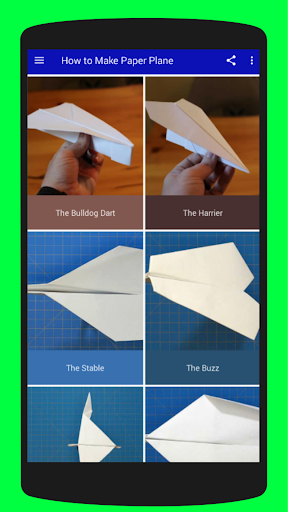 In this fun activity app, you will find lots of paper airplane tutorials followed with clear step by step instructions so that you can learn how to make a paper plane easy.
