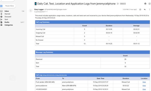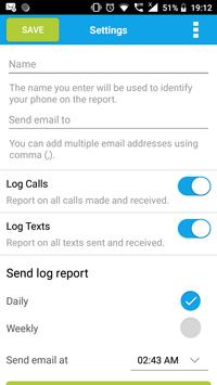 Each day the app sends you a list of calls made and texts exchanged from the phone to your email. Configure the time of email as needed.