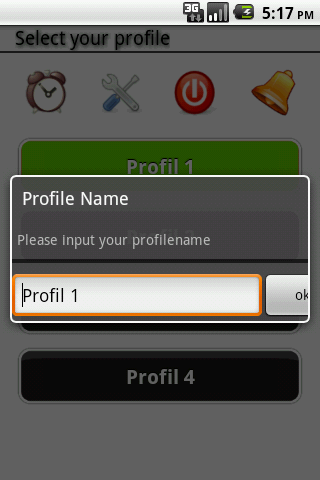 Simple change your profile by clicking on the buttons. You can edit a profile or profile name by long clicking on the buttons
