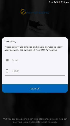 Here at Easy Send SMS app , we want to understand your business needs, so that we have been provided Easy Send SMS app with the best possible app to send SMS messages and grow your business . Easy , Reliable. Fast and free App . Get 15 Free SMS Now and Start Sending SMS Message To Your your lovers.