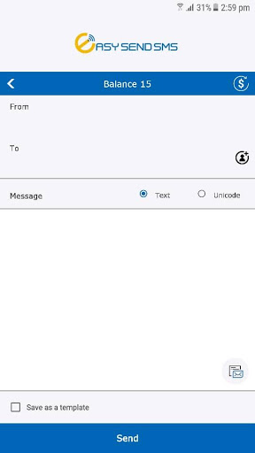8- Reload your account from app itself ( Currently we accept Google payments).Would you like to purchase big quantity please visit our web https://easysendsms.com and you can login with your login details to SMS platform and discover more features