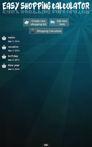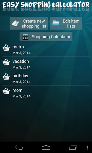 With Easy Shopping Calculator, you can create an entire list of items that you'll need when you get to the store. While shopping, input quantities and prices, and you'll have a running total as you continue shopping. An item not already listed in the app? Just add it to the items list. If there's and extensive number of items not listed in the app, you can create lists on your PC and transfer them to the app via USB.