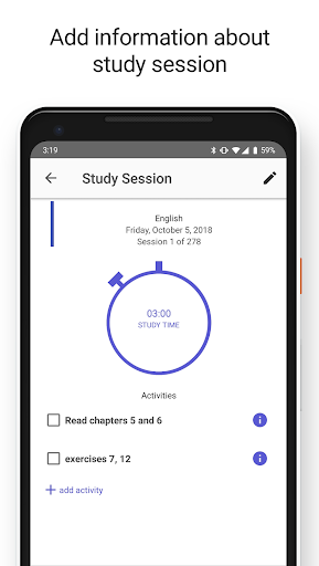 - Option to add the list of activities for each study session;