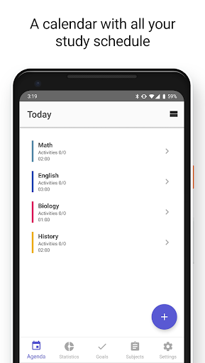 - Customize your subjects with colors, names, amount of time studying;