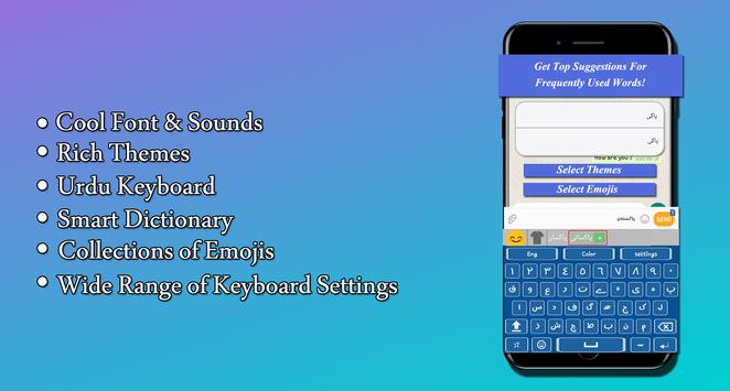 Urdu English Keyboard Emoji with Photo Background changer and color theme. Urdu keyboard allows you to type messages in Urdu language with amazing fonts, Urdu keyboard has multiple numbers of colorful themes has Advantage of hundreds Emoji and smileys sending of GIFs.