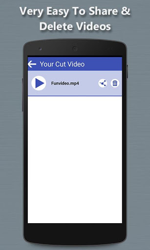 Very fast and easy to use.Simply cuts video with simple steps and save file to your phone.also you can share your videos with your friends or families.