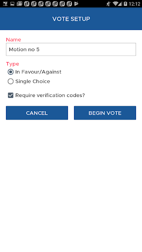 Currently, the app supports two voting modes, called In Favour/Against and Single Choice. The former is suitable for voting on motions/resolutions/proposals that can be either accepted or rejected (abstention is also possible), and was added to simplify the setup process as much as possible, while the latter allows the user to define multiple options to choose from, which can be used for example to elect officers.