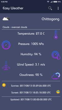 Easy Weather - A simple weather application where you can get current weather condition of s selected location in a simple clean interface. Weather Data: https://openweathermap.org/ Graphics: https://www.facebook.com/psychotanveer