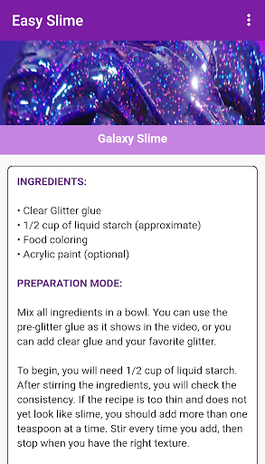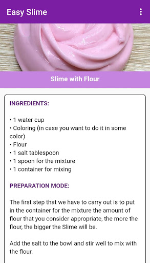 In this application you will find easy ways to make slime at home with your children. The ingredients used to make slime are very easy and can be found at home.