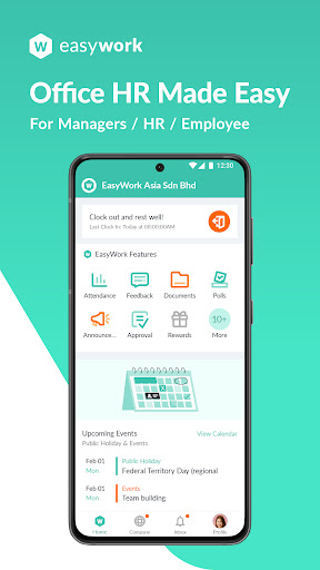 * EasyWork is just like an HR Management Office in Mobile App. Make HR team, Boss and Employee easier.