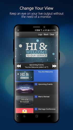 It's time to go mobile and get out of the media booth! Now you can control and view EasyWorship 7 content from any Android mobile device on your network. Whether you need to control or view your church service, you can say, “Goodbye!” to the mouse and say, “Hello!” to freedom.