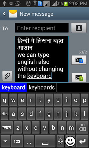 This is a Soft Keyboard to type Malayalam on your Phone. You can type easily on any app like Gmail, Facebook, Whatsapp. you can write blogs in Malayalam in web browser. This keyboard works as default keyboard in android phones/tablets. No need to learn specific Malayalam keyboard. Just type in English and press space you English word will be converted into Malayalam script automatically. This keyboard provides word suggestions to type in a fast way. This Keyboard provides English typing option to type in English. if you want to type in English just press toggle button to switch English to Malayalam or Malayalam to English.