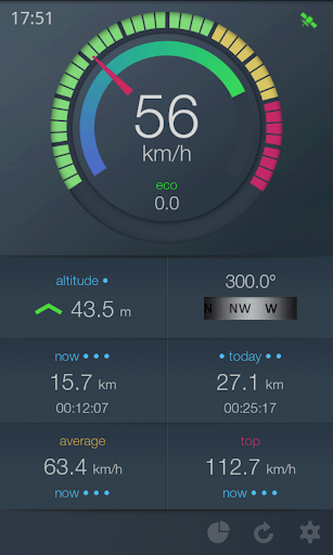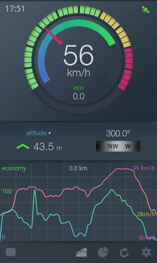● EcoDrive Speedometer is supported all types of overland, aerial and naval transport and also all sports, where speed, distance, time and acceleration are important. Walking, bicycling or mountain skiing - anytime and anywhere you want to know speed or altitude/distances you overcome, how long your workout lasted, you cannot do without EcoDrive Speedometer.