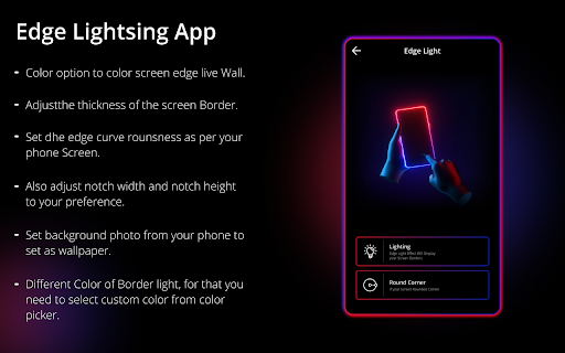 Install and use Round Corner & Edge Lighting and all android phone to experience the the latest handset We are happy to receive feedback from you to develop this application. Thank you for using.