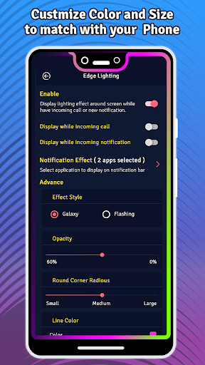 application allow animated live wallpaper theme with that you can set Edge lighting rounded corner live wallpaper in your device.application does not consume more battery while you set in your mobile screen as live wallpaper.it adds smooth and beautiful round corners live light into your screen.