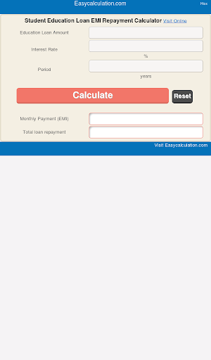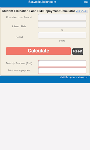 Calculate education loan EMI based on the loan amount, interest and number of periods.