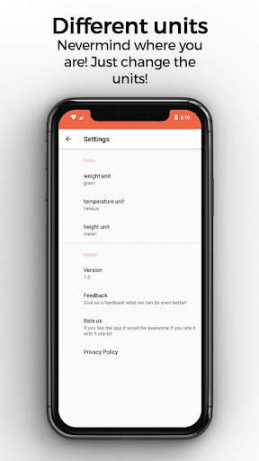 In addition to grams, celsius and meters, our app also supports ounces, Fahrenheit and feet.