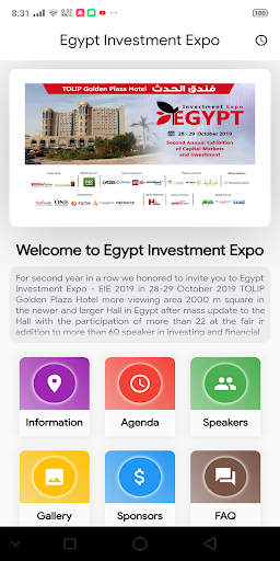 For the second year in a row we honored to invite you to Egypt Investment Expo - EIE 2019 in 28-29 October 2019 TOLIP Golden Plaza Hotel more viewing area 2000 m square in the newer and larger Hall in Egypt after mass update to the Hall with the participation of more than 22 at the fair in addition to more than 60 speaker in investing and financial markets, banks and banks throughout the two days International Conference and exhibition expected to be the most important for direct and indirect investment in Egypt as it was last year and considers the show is the largest gathering of companies and banks and In Egyptian and international financial markets Forex binary options, digital and real estate investment companies, investment funds and major insurance companies in Egypt and the Arab world.