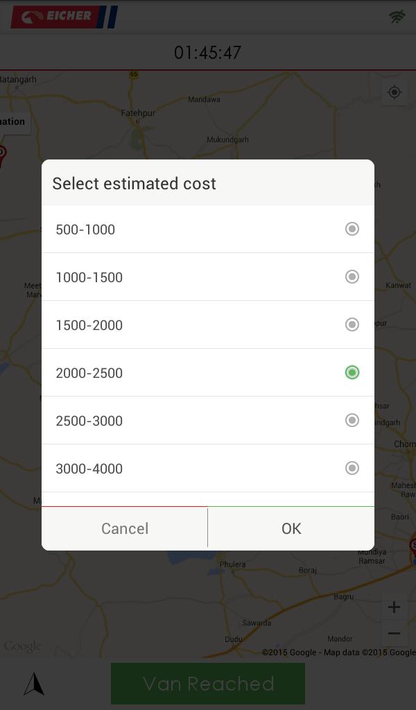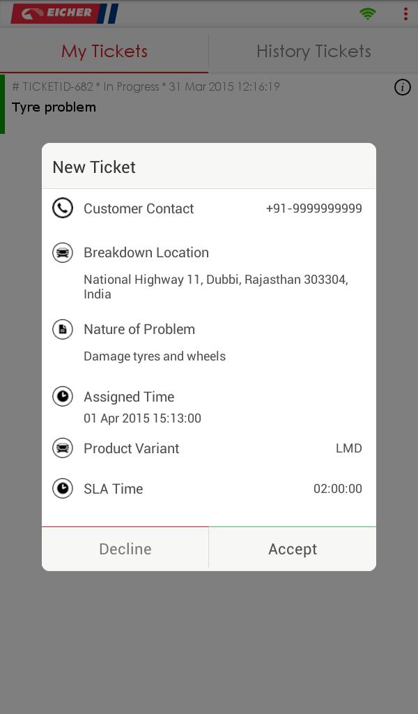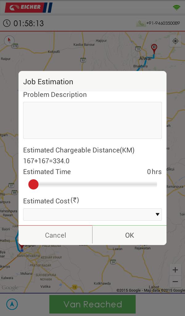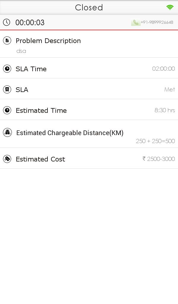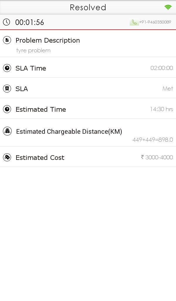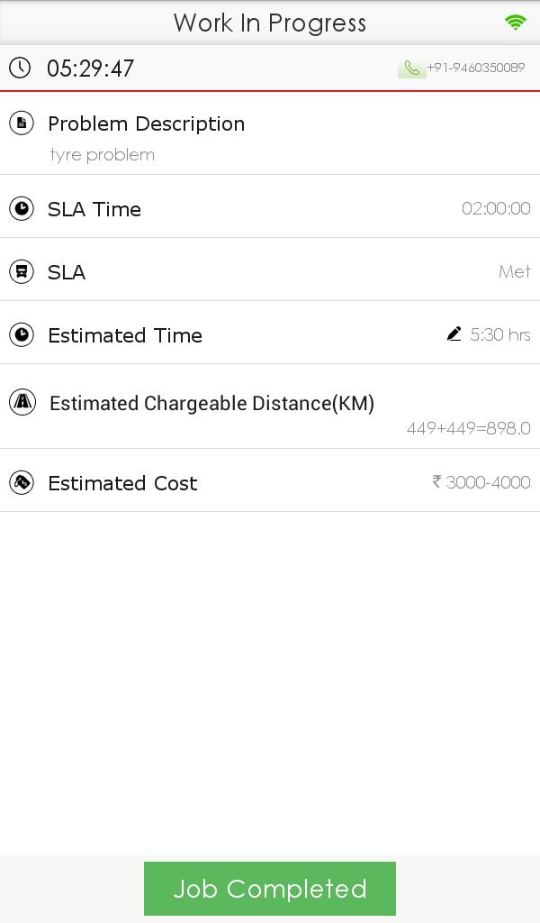 - Track location of service van up to breakdown location on google map.