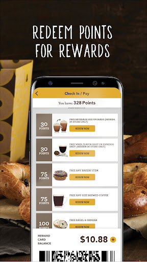 The Einstein Bros Bagels mobile app is the most convenient way to pay and check-in to earn rewards. Mobile pay means you can leave your wallet at home, and using the app to check-in with Shmear Society means earning and redeeming points is easier than ever!