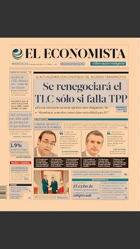 Check the print editions of El Economista, a leader in business, economics and finance of Mexico: Monday through Friday edition, Economic Thermometer, Automotive, Strategies, Tourism, Credit Unions, Cars and The Washington Post. Access the luxury magazines Horloger, Equestrian and O'Clock.