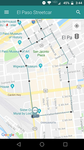 The El Paso Streecar App provides El Paso passengers with real-time information about their streetcar's location, routes and more.