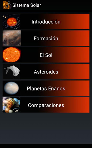 Con esta aplicación podrás descubrir el Sistema Solar, podrás recorrer sus planetas y principales características a través de numerosas imágenes y riguroso texto. Hay dos secciones: