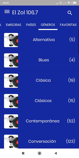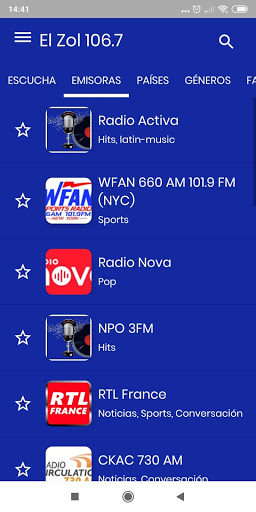 - Choose between sports, news, latin music, hits, pop, rock and other musical styles.