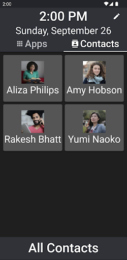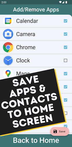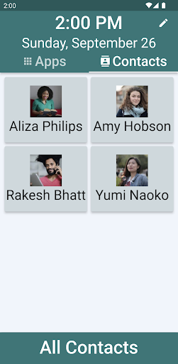 Elder Launcher supports pinning favorite apps and contacts to the homescreen for quick access.