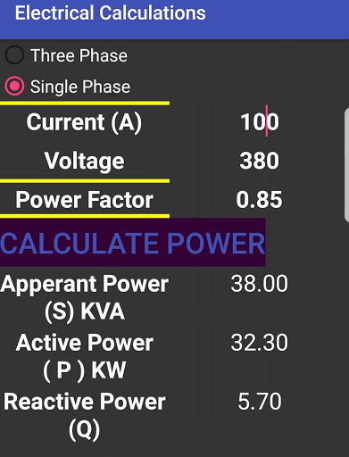 Calculate Power factor and Unit converter form Horse power to Kilo watt and covert from kilo watt to horse power & and calculate the apparent power and active power and reactive power for thee phase and single phase loads
