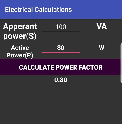 Calculation of power factor
