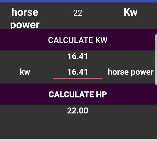 Unit converter between kilo watt and horse power units