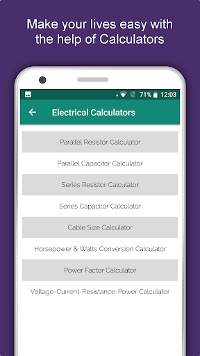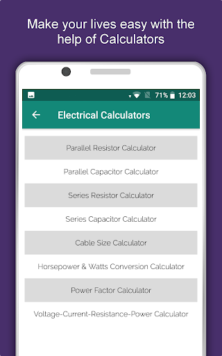 - Various Electrical Calculators to get rid of difficult numerals.