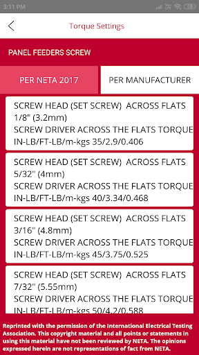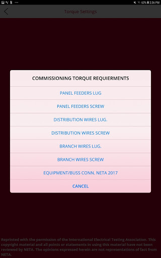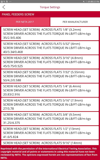 • Torque requirements for equipment, distribution wires, and feeders may be selected and auto-filled into the document.