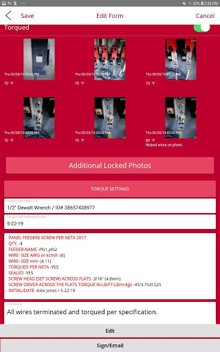 by TimeLockDocs with embedded torque settings is designed for electricians, electrical and solar contractors, inspectors, and commissioning agents. It streamlines and simplifies the documentation process for electrical and solar panel installations, repair, and certification.