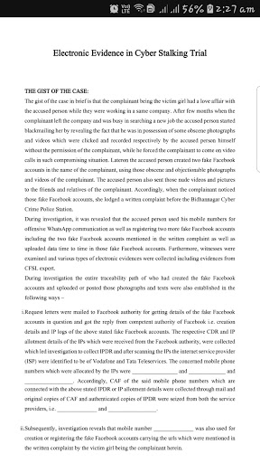 This app deals in depth on very peculiar nature of electronic evidence, Cyber forensics , chain of custody. This app also provides portion of Indian Evidence Act and Information Technology Act relevant to electronic evidence. This app contains the relevant portion of the landmark judgements on electronic evidence. More than twenty five judgements have been discussed. Four important criminal cases which depends wholly on electronic evidence have also been discussed. The app is connected with a YouTube video which related to electronic evidence. The may provide an overall idea of electronic evidence which is the most important evidence in today's world.