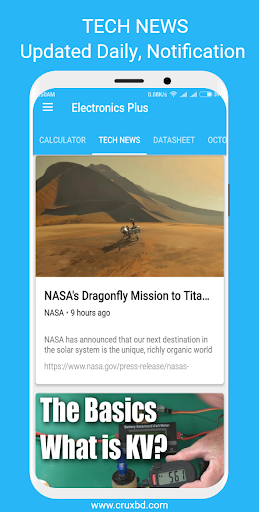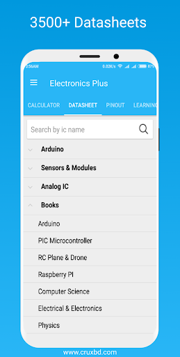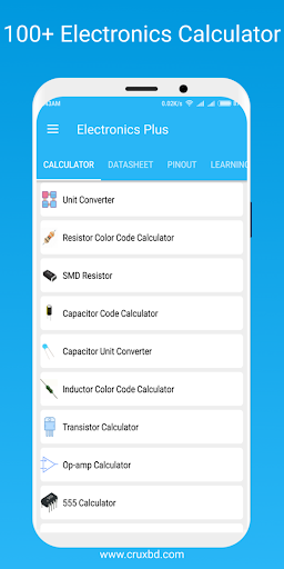 Electronics Plus is a compact app which is designed by CRUX where you will find Electronics, Electrical, Drone/RC Plane calculators, Aeronautics, Thousands of Datasheets collections, Component Pinouts in one App. It’s a must needed app for all Electronics and Electrical enthusiastic. We will be adding more calculators and features.