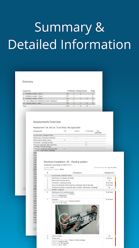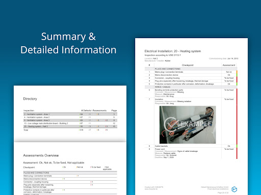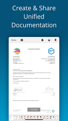At the end of the process, you create uniform reports and easily share them with your customers and partners, e.g. via cloud services or email. The inspection report contains a management summary of the inspected objects / sites as well as a detailed list of defects and hazards including photos and information, such as required actions and responsibilities.