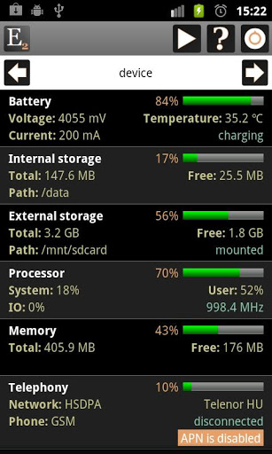 - displays software information: synchronization, accessibility, build, operating system, settings, configuration, clipboard, drm, environment variables, features, java, media effects, shared libraries