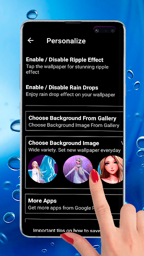 Cute girly themes for pretty little princesses are here! Frozen kingdom is a great idea for fantastical cartoon! Cute Elsa and Anna will be your Friends! They are imaged on our cool live wallpapers with water ripple effect!