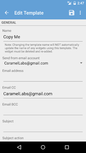 You can set up multiple email templates (which include the email recipients, subject, message, and even attachments) for tasks, work, personal, etc. Then use those templates to quickly create a pre-populated email or to share something from another app using the Share menu. You can also create shortcuts on your home screen using a template.