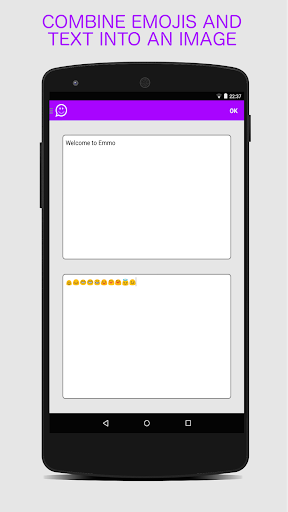 With Emmo there are no limits to your creativity, you can write whatever text message you want and choose whatever emojis you want to use. The app works by combining them in the following way, each letter in your text message will be written with one emoji, and after that a screenshot is taken so you can share it like you normally would with a normal image.