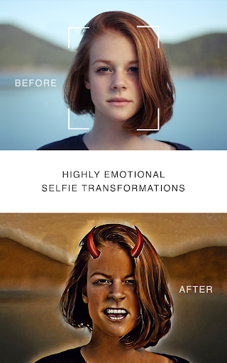 ArtMyMood - the first ever empathic selfie app! Powered by AI and can recognize emotion and automatically style your selfie in accordance with your mood. Stop for a moment and make a selfie: (Bang) you're a devil burning with anger; (Bang) you're an angel in a rainbow sky; (Bang) a ghost completely lost in the dark woods.