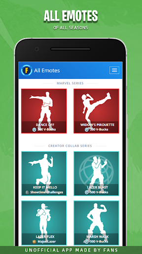 Our Battle Royale Apps development team has included the more than 300 Emotes currently in the Battle Royale game best known so far. If you are a fan of this video game and want to know the name of each dance, its description and how to get it, we recommend that you download this app and start enjoying.