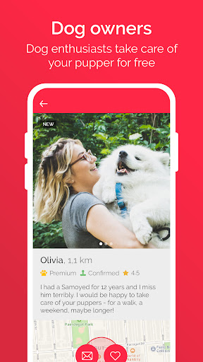 Got a dog ? Whether it's for walks, playtimes and cuddles, for a few hours or for several days during your vacation... thousands of people dream of owing a dog but can't have one for various reasons, so they make themselves available on a voluntary basis to take care of your doggo and have the chance of having a great time with him/her. And it's great for your dog: (s)he makes a new friend, has more outings, more petting, more games… doggie dreams come true.