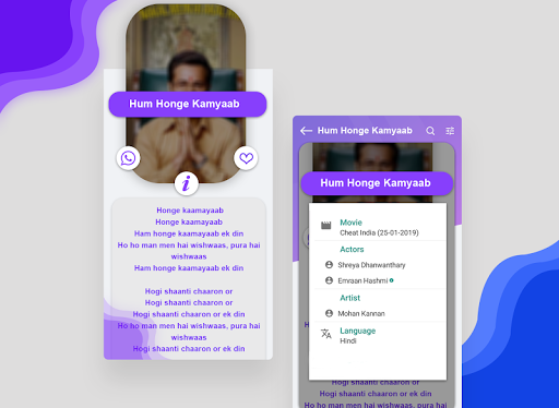 We always keep adding songs lyrics for new & old hindi movie songs, so whenever you come back, you will always find lyrics for your favorite movie song added to the ever growing lyrics library. We have the biggest collection of songs lyrics it's a place where all searches end! We have a large universe of lyrics where stars of all genres and ages shine,you can find songs lyrics here. Emraan Hashmi lyrical app is best in hindi lyrics category.