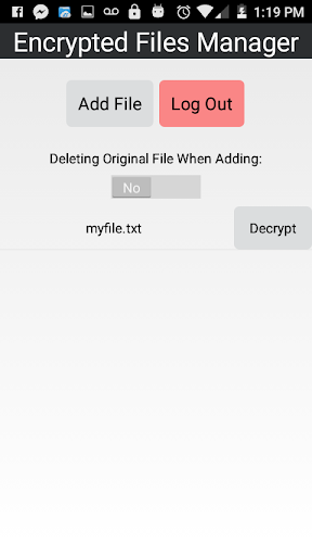 Caution: The keys for encryption are dynamical generated in the application, so do not uninstall the application before back up your files.